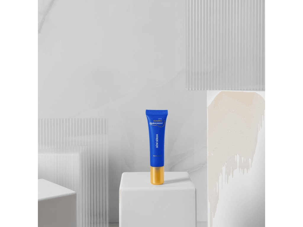 - Na odlíčenú a očistenú pleť naneste malé množstvo kyseliny hyalurónovej očného séra. Gél jemne vmasírujte končekmi prstov do pleti.